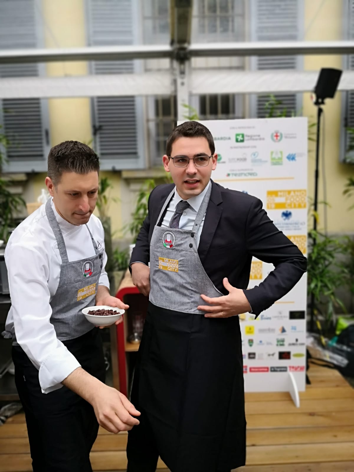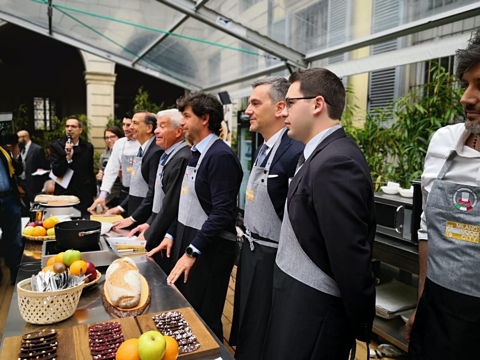 La colazione “ideale” è stata presentata da tre squadre per lo showcooking. In quella di Rota c’erano il governatore Fontana, il maestro cioccolatiere Alberto Simionato, neodirettore di Chocolate Academy Milano, e Matteo Cunsolo), presidente dell’Associazione panificatori (Confcommercio Milano), che hanno proposto pane ricco di fibra con cioccolato fondente (con poco più dell’1% di zuccheri) e frutta secca.